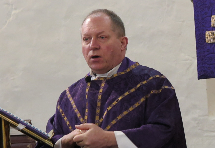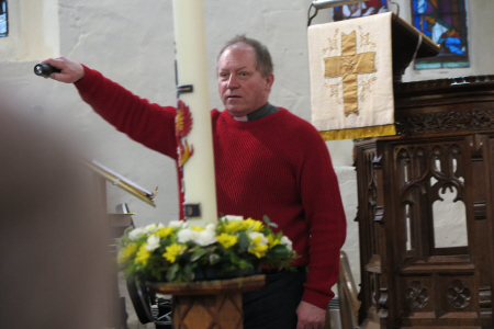 Tony had to briefly interrupt his sermon to re-light the candle which